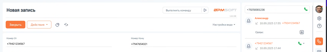 Менеджеры тоже оценят выгоду от интеграции – при каждом звонке BPMSoft будет показывать карточку клиента, а контакты и лиды будут создаваться автоматически.