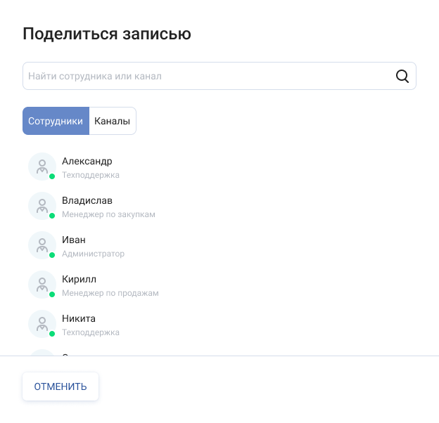 Чтобы поделиться записью звонка в чате, в проигрывателе нажмите на иконку в правом нижнем углу.