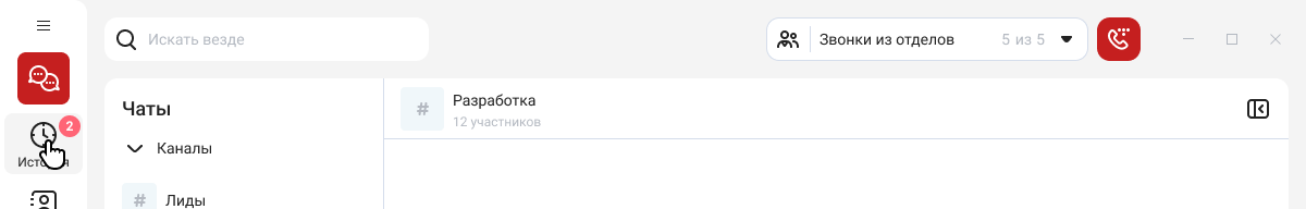 На иконке истории в боковом меню отображается общее число пропущенных звонков, как личных, так и по вашему отделу.