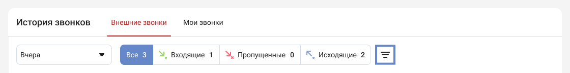 Нажмите на кнопку «Фильтры», чтобы открыть панель фильтров. С ее помощью можно отфильтровать звонки не только по клиентам и сотрудникам, но и: