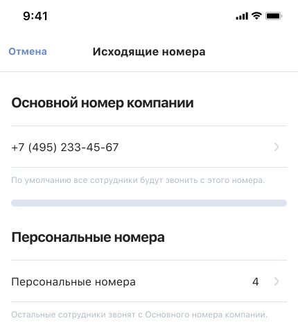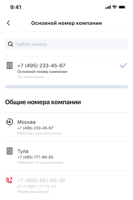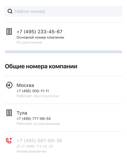 - Общего номера компании — с него будут звонить сотрудники и отделы, у которых нет персональных или региональных номеров.