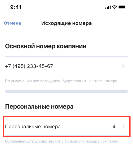 Перейдите в «Настройки» — «Настройки ВАТС» — «Дополнительные настройки» — «Общие» — «Исходящие номера» — «Персональные номера».