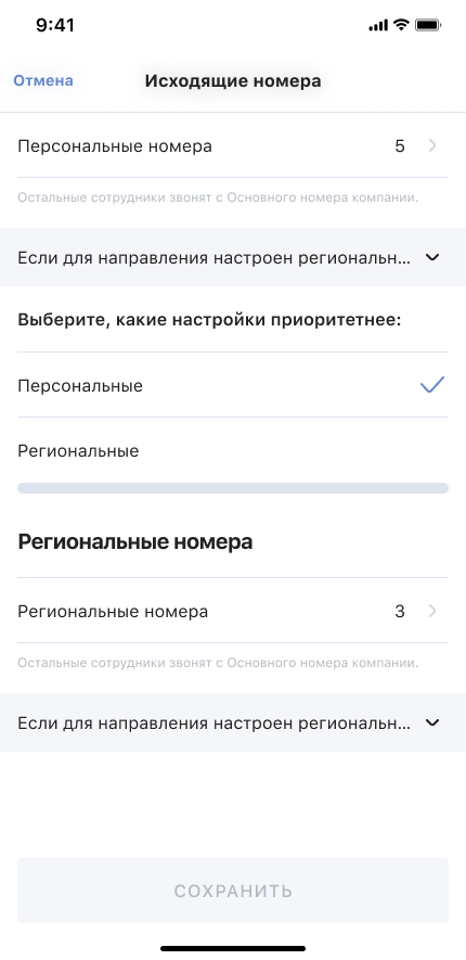 Если ваши клиенты из других регионов звонят сотрудникам на персональные номера, то могут возникать такие ситуации: клиент сохраняет номер менеджера, но затем менеджер звонит ему с незнакомого номера (регионального исходящего) — клиент думает, что это спам-звонок, и сбрасывает. Чтобы этого избежать, вы можете изменить приоритет определения исходящих — при наличии у сотрудника персонального исходящего номера именно он будет определяться у клиента.