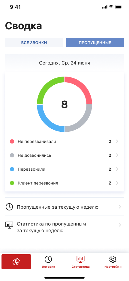 - анализировать статистику звонков и быстро реагировать на пропущенные.