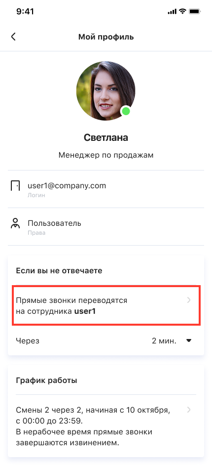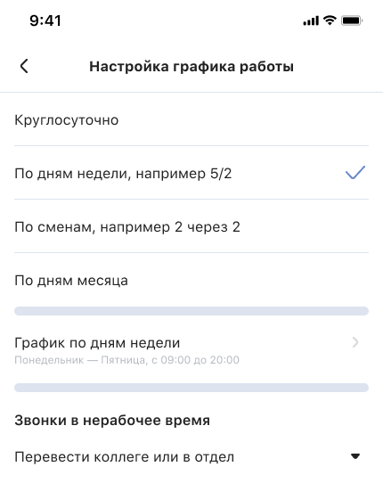 Гибкие настройки расписания сотрудника позволят один раз отрегулировать прием звонков в рабочее и нерабочее время и не вспоминать об этом до тех пор, пока график работы менеджера не изменится.