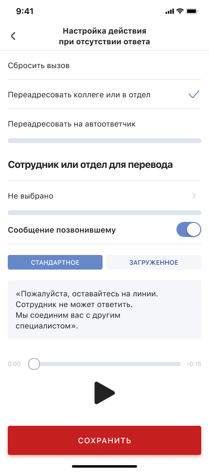 - Переадресовать на автоответчик — чтобы прямые звонки сотрудникам не оставались без ответа, можно переадресовать их на автоответчик.
