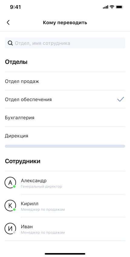 Выберите сотрудника или отдел.