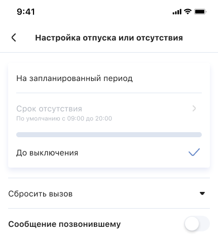 Переадресация входящих на время отпуска или отсутствия