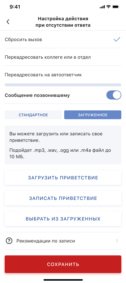 - Загрузить приветствие, используя собственный аудиофайл.