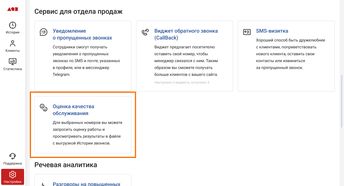 В этой статье рассказываем, как настроить сервис «Оценка качества обслуживания». Прочитать подробнее о нём можно здесь: